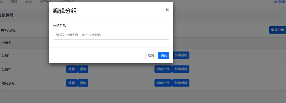 删除一个分组时,会把分组下的短链、活码等一并删除