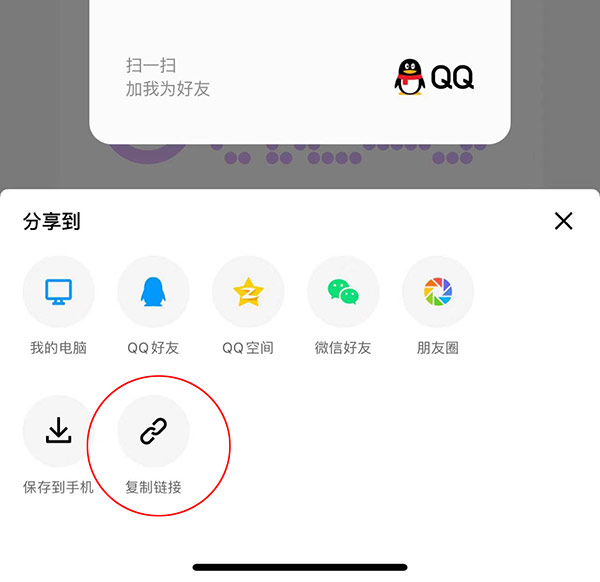 第三步:选择“复制链接”即可获得QQ链接(注:去掉文字部分)