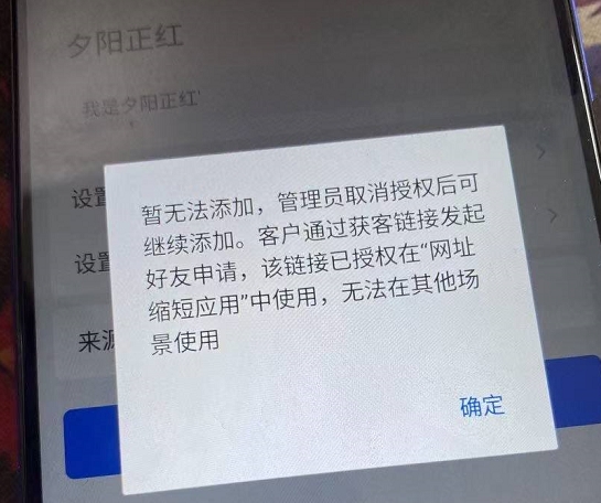 1. 用户加企微时提示,该链接已授权在“网址缩短应用”中使用,无法在其他场景使用